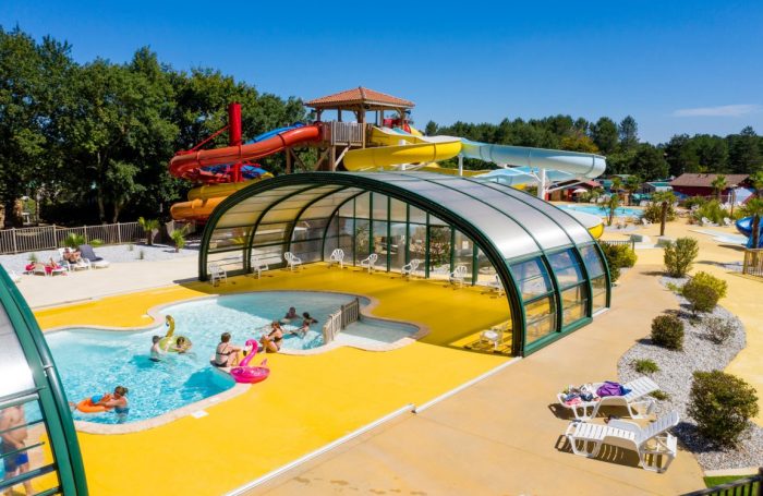 Voor uw waterpret geniet u ter plaatse van een buitenzwembad en zult u plezier beleven op de waterglijbanen van de camping.