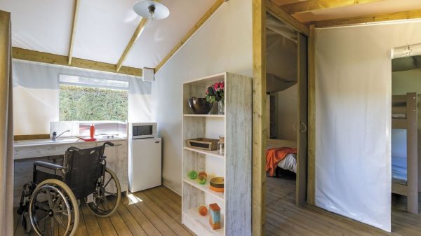 Most establishments offer one or more adapted accommodations. Most of these are mobile homes, but in recent years manufacturers have expanded their range to include chalets and even specially designed tents. Whatever the type of accommodation chosen, the rules are almost the same: optimised circulation areas for wheelchairs, lowered and adapted kitchen units, lowered wall units, bathrooms with walk-in showers and transfer bars around the toilets, lower beds, etc. In addition, builders have made great efforts to ensure that "PRM accommodation" no longer looks like... hospital rooms.